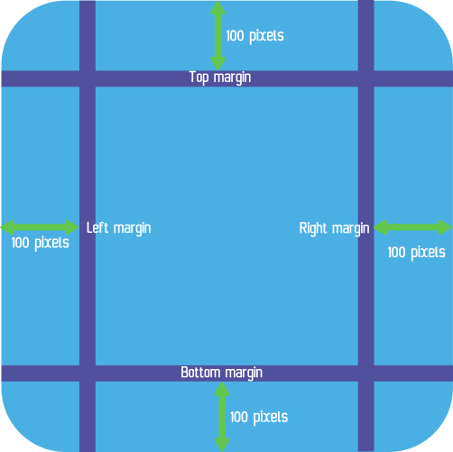 If the top margin is set to 100, the margin would be 100 pixels from the top and if the bottom margin is set to 100, the margin would be 100 pixels from the bottom.